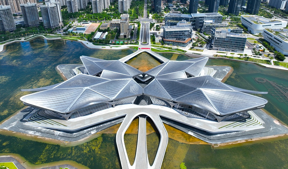 チャイナ・サンエによって建設された珠海金湾市民芸術センタープロジェクトは、国際的に有名な建築家ザハ・ハディドの遺産です。単層鋼鉄格子の屋根は「蝶」の形をしており、高低差があり、落差が大きく、曲率が変化する双曲状の空間となっています。双曲的な小断面の箱型屋根の副梁はすべて同じで、まるで水面に浮かぶ蝶のよう、または羽を広げて飛び立つ昆鵬のようです。素晴らしい建築芸術の美しさを持ち、珠海市の新たな都市文化ランドマークとなり、大湾区の文化芸術交流の重要な担い手となっています。